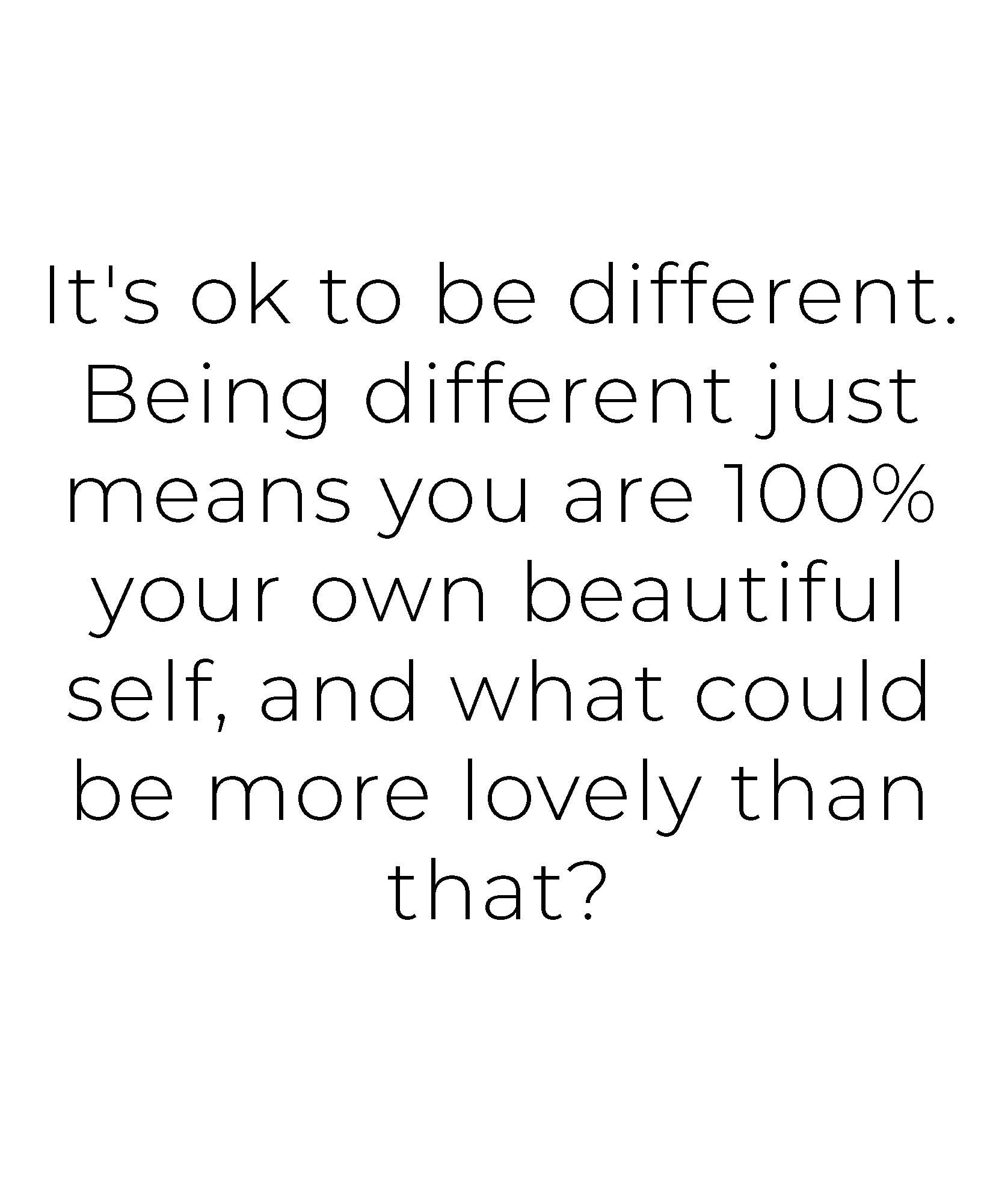 It's ok to be different. Being different just means you are 100% your own beautiful self, and what could be more lovely than that?